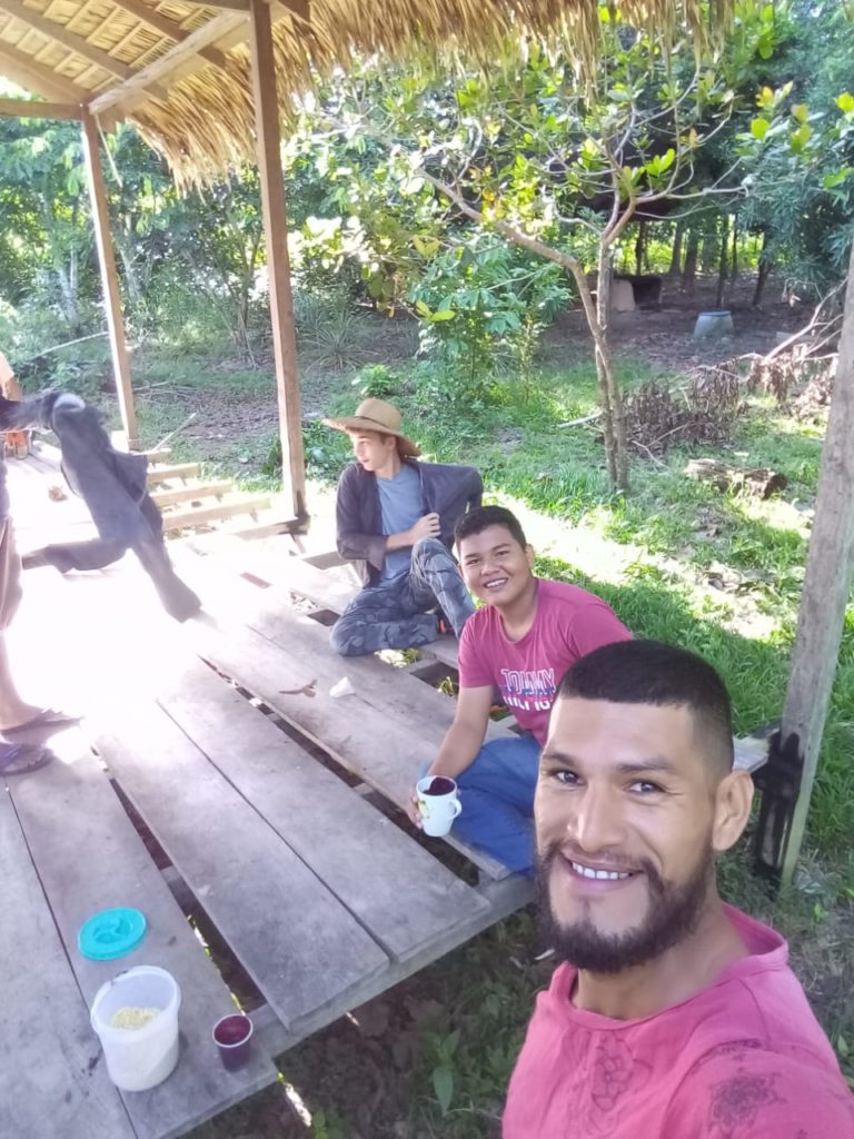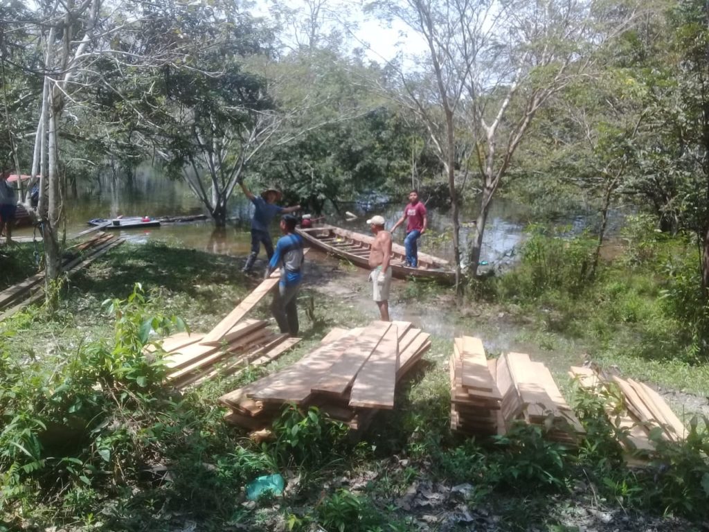 Two years ago Jadilson started working in the community of Santa Civita. Our focus is cell groups (small groups) and discipleship. However, this community quickly embraced the Good News and their cell group began to be too big for one house. They multiplied but still wanted to gather together as a larger group so they started building their church. They got it covered; however, when it rains and blows they can get wet even inside. They decided to cut some lumber to close it in and Luke and his friend wanted to help carry the wood out of the jungle.