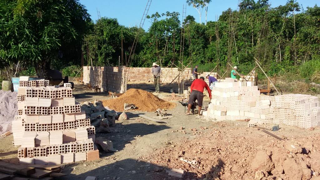 Hi everyone! Wow….it’s been a looong time! Last August was my last post! Well, sorry, but this time it’s about another trip! This trip was also a week long trip, and we went by car, but our whole family went this time! We didn’t take an American team, just Brazilians and some other missionaries. It was the best! We went to a community that was in the interior too, but we didn’t take a balsa. Joaquim (over all the church construction in the river and interior communities) said it was only like a 2 hour drive…..well, turned out to be a 4 hour drive instead π The plan was to meet Monday at Β Scott and Aldine’s (she was our cook) at 7 to pray and have a little something to eat, then leave. We ended up leaving at like 10, then we stopped at a Pastor’s house to pick up his wife, because they are the pastors of the region this community is in, and they had orange trees so the men picked a ton of oranges to take π We were there for about 20 minutes, and then after we got on the dirt road, (we took a main road out of town, so we turned off the main road onto the dirt road) Β when we were almost to the community, we had problems. There were some REALLY steep hills, and all the cars were really packed, so made it heavier too. The first one we got stuck was a hill going down, then a bridge and then a steep hill going up. Verena, the head of the health team, was driving one of the Kombis, (we took our Doblo, two Kombis and the Toyota (misson’s truck) ) and she tried it after Joaquim. (he was driving the Toyota) She didn’t make it after the bridge, tried again, didn’t make it again, so then everyone out of Β that Kombi and started walking up the hill. Then Joaquim and Dad started coaching her how to go up, and she got it then!!! π then it was Mom’s turn (she was driving our car) but Dad did it and made it with a little pushing from Joaquim π Then the Kombi that Dad was driving. Pretty sure it made it the first time too π After that there was one more, where Mom got stuck. She went after Joaquim, and there is big ruts sometimes, not really ruts, just big holes where the water runs when it pours. She went up, the wheels were turning, started going back down (oh, and all us girls were with her, along with Aldine, Elizabeth and Jayane, Joaquim’s daughter) and then she fell in the rut. Sierra screamed, Joaquim came and asked her if she wanted help, and we all got out. Joaquim got it out, with some help and pushing (cause back left end was literally sitting on the ground) and went on up. Then we continued π